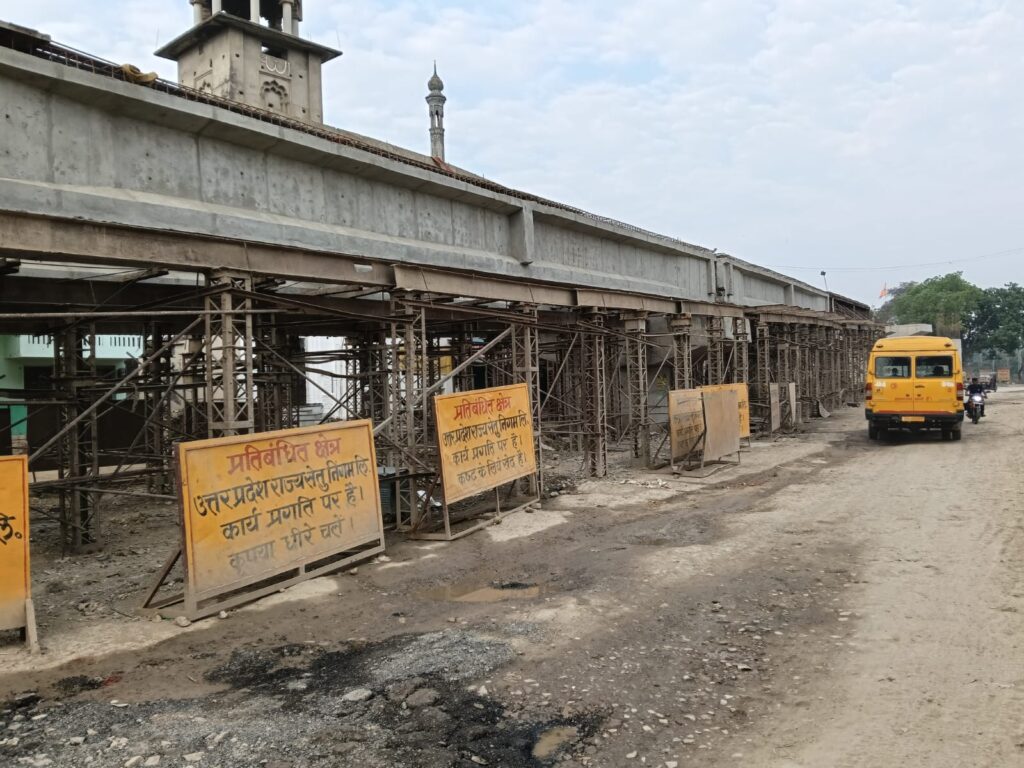 नंदगंज रेलवे क्रॉसिंग पर बन रहा ओवरब्रिज प्रगति पर, जाम से मिलेगी राहत
