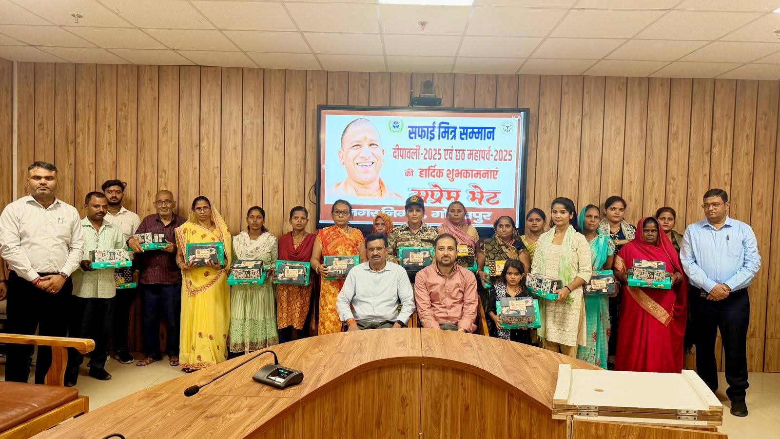 गोरखपुर। नगर निगम परिसर में शनिवार को दीपावली एवं छठ महापर्व के अवसर पर नगर निगम के सफाई कर्मियों और समस्त स्टाफ का सम्मान समारोह आयोजित किया गया। कार्यक्रम में महापौर डॉ. मंगलेश श्रीवास्तव, नगर आयुक्त गौरव सिंह सोगरवाल और अपर नगर आयुक्त सहित निगम के वरिष्ठ अधिकारी उपस्थित रहे।