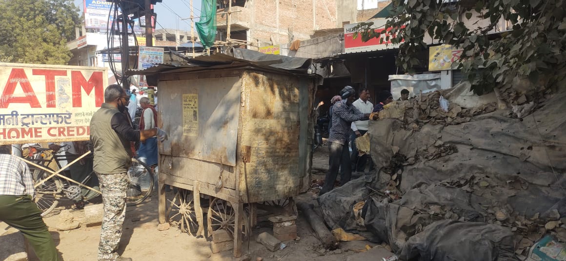 पंचकोशी चौराहे से प्राप्त शिकायत को निस्तारित करते हुए चौराहे पर अवैध रूप से अतिक्रमण कर रखी हुई गुमटी ज़ब्त कर लिया गया और बगल में ही झुग्गी और जर्जर गुमटी को ध्वस्त कर के इलाक़ा खाली करवाया गया l