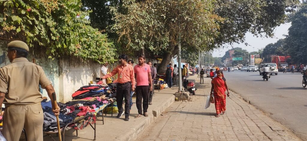 वाराणसी: नगर आयुक्त के निर्देश के क्रम में नगर निगम प्रवर्तन दल द्वारा अपर नगर आयुक्त द्वितीय राजीव कुमार राय द्वारा प्राप्त निर्देश के अनुपालनार्थ से पिपलानी कटरा स्थित गली के नुक्कड़ पर (वंदना होटल के सामने) अवैध रूप से ठेला लगा कर मार्ग अवरुद्ध करने की शिकायत पर मौके पर पहुंच वेंडर को सख्त चेतावनी देते हुए नुक्कड से हटवा कर वेंडिंग जोन में व्यवस्थित किया गया l अपर नगर आयुक्त द्वितीय राजीव कुमार राय द्वारा प्राप्त निर्देश का अनुपालन करते हुए अतिक्रमण निरीक्षक संजय श्रीवास्तव के साथ मिल कर कचहरी स्थित बनारस क्लब के बाउंड्री वाल के साथ बेतरतीब ढंग से लगे हुए वेंडरों को व्यवस्थित कर नाला खाली करवाया गया कुछ को अत्याधिक अतिक्रमण करने के कारण जुर्माना भी किया गया l