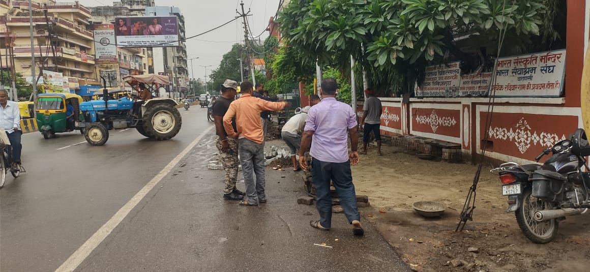 वाराणसी।नगर आयुक्त के निर्देश के क्रम में नगर निगम प्रवर्तन दल द्वारा जोनल अधिकारी भेलू पुर जोन जितेन्द्र आनंद के नेतृत्व में जोनल अधिकारी विकास प्राधिकरण चंद्र भानु, जेई जय प्रकाश गुप्ता विकास प्राधिकरण एई जितेन्द्र कुमार सिंह पीडब्ल्यूडी, जेई धनंजय पीडब्ल्यूडी के उपस्थिति में पुलिस चौकी प्रभारी आईबी दुबे व पुलिस बल के सहयोग से मंडुआडीह चौराहे से भिखारी पुर तिराहा, सारनाथ सुन्दर पुर होते हुए नारियां तक सिंहपुर पुलिया से सारनाथ होते हुए हवेलीया चौराहा तक सघन अतिक्रमण अभियान चलाया गया चलाया गया जिसके मुख्य बिंदु निम्नलिखित हैं :- उपरोक्त पूरे इलाके में घोषणा कर सभी दुकानदारों का अतिक्रमित सामान हटवा कर सड़क और पटरी खाली करवाया गया l मार्ग में जितने भी वेंडर मार्ग को अवरुद्ध कर सड़क पर वेंडिंग कर रहे थे सभी को सड़क से हटवा कर नजदीकी वेंडिंग जोन में व्यवस्थित किया गया l मार्ग में जितने भी दुकानदारों द्वारा अवैध अवैध तिरपाल /पन्नी बाँधा गया था सभी को खुलवा दिया गया l कमांड सेंटर से प्राप्त शिकायत ( सुसुवाही स्थित यूनियन बैंक के सामने गली से प्राप्त शिकायत गली में पाईप डाल कर अतिक्रमण करने के संबंध में कर्नल राघवेंद्र नाथ मौर्य और प्रवर्तन दल की टीम के साथ अतिक्रमण निरीक्षक संजय श्रीवास्तव के साथ मौके पर पहुंचकर शिकायत का निस्तारण किया गया। उपरोक्त पूरे अभियान के दौरान अत्याधिक अतिक्रमण करने वाले दुकानदारों का 02 गाड़ी से अधिक सामान ज़ब्त कर जुर्माना भी किया गया साथ ही मार्ग में प्रतिबंधित प्लास्टिक का ईस्तेमाल करने वाले दुकानदारों /वेंडरों से लगभग 01 kg प्लास्टिक के थैले ज़ब्त कर सभी को आंशिक जुर्माना भी किया गया I कुल जुर्माना :-अतिक्रमण – रू. 900, प्लास्टिक – रू. 5,000, कुल योग – रू. 5,900 वसूला गया।