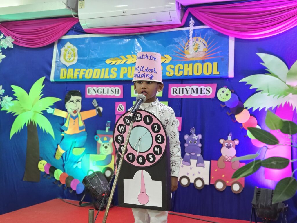 मिर्जापुर। डैफोडिल्स पब्लिक स्कूल की तीनों शाखाओं में आयोजित इंग्लिश और हिंदी राइम्स व स्टोरी टेलिंग प्रतियोगिता में नन्हे-मुन्ने बच्चों ने अपनी प्रतिभा का शानदार प्रदर्शन किया। कक्षा नर्सरी से यूकेजी तक के विद्यार्थियों ने अपनी शिक्षिकाओं के मार्गदर्शन में काव्यात्मक कौशल और कहानी कहने की अद्भुत प्रतिभा का परिचय दिया।