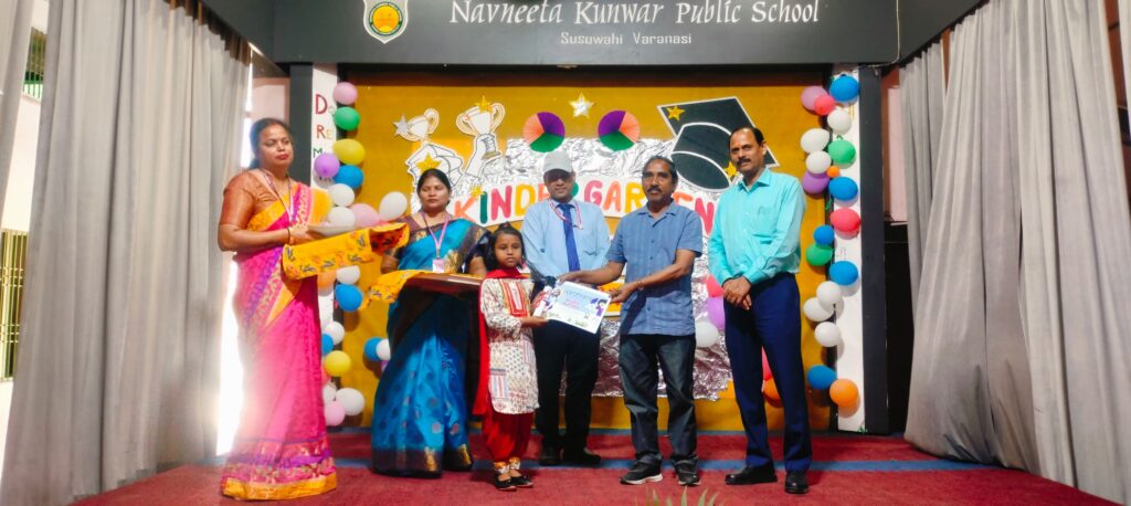 वाराणसी। सुसुवाही स्थित नवनीता कुंअर पब्लिक स्कूल परिसर में यूकेजी कक्षा के विद्यार्थियों का दीक्षांत समारोह हर्षोल्लास और गरिमामय वातावरण में आयोजित किया गया। कार्यक्रम का शुभारंभ विद्यालय प्रबंधक राजेश कुमार राय, उपाध्यक्ष प्रवीण राय, प्रधानाचार्य डॉ. दिवाकर राय तथा वरिष्ठ एवं कनिष्ठ समन्वयकों की उपस्थिति में मां सरस्वती के चित्र पर दीप प्रज्वलन और पुष्प अर्पित कर किया गया।