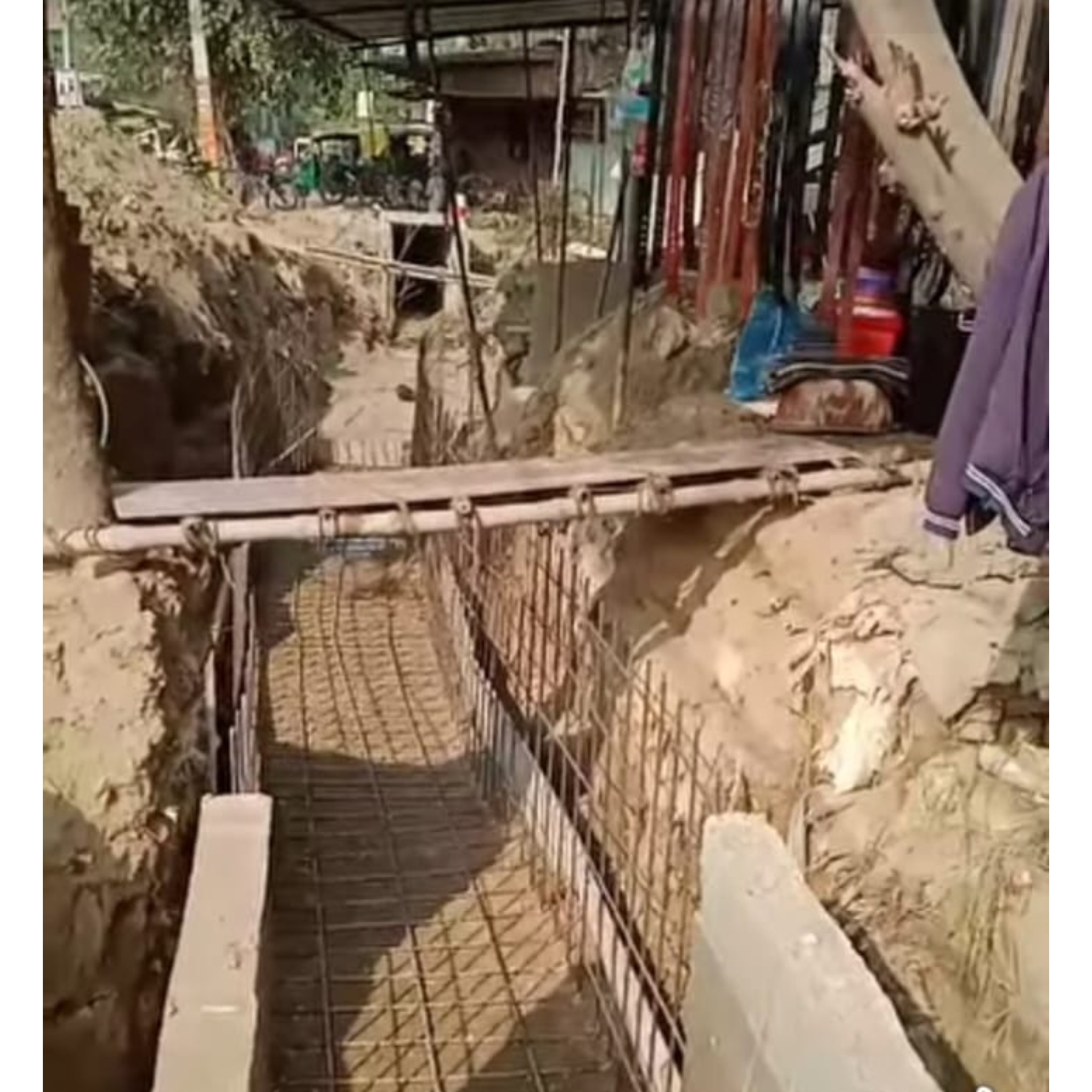नाला निर्माण में मनमानी, सड़क की चौड़ाई प्रभावित होने से जनता में उबाल