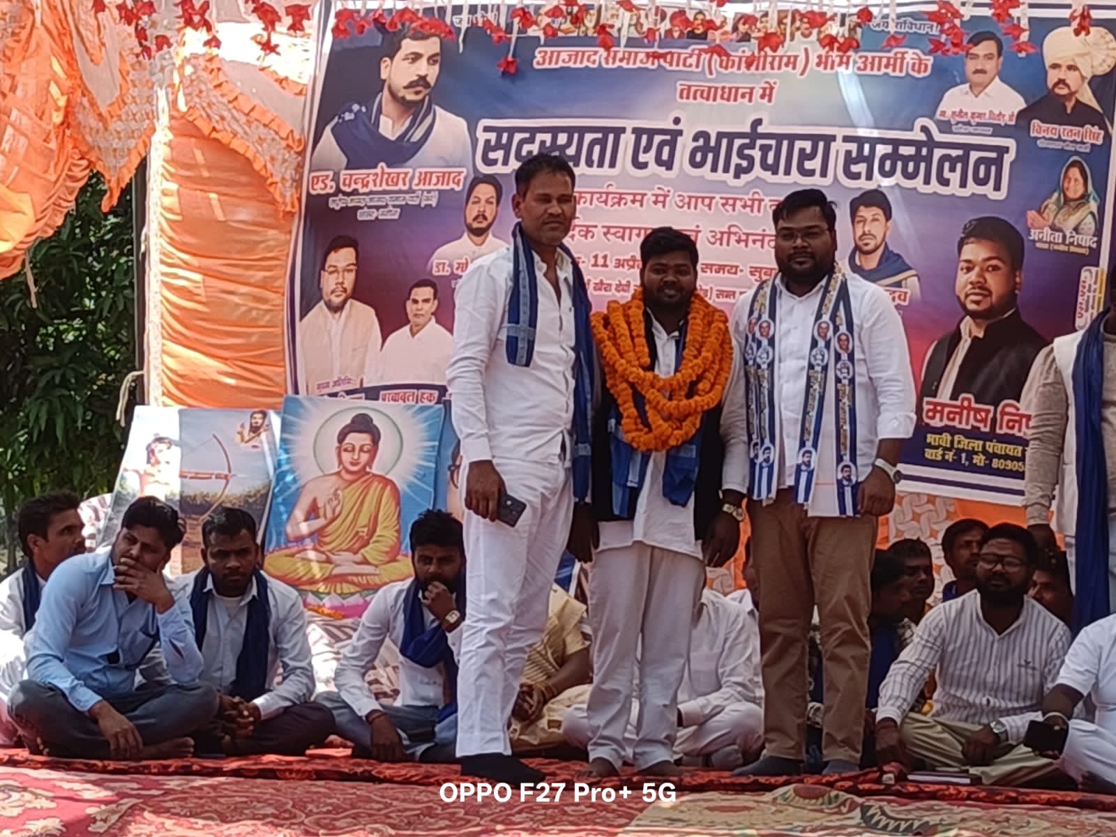 संतकबीरनगर। शनिवार को मेहदावल क्षेत्र के बढ़या ठाठर स्थित खैरा देवी मंदिर परिसर में भाईचारा सम्मेलन का आयोजन मनीष निषाद के नेतृत्व में किया गया। कार्यक्रम के दौरान निषाद पार्टी (निर्बल भारतीय शोषित हमारा आम दल) के आईटी सेल के प्रदेश सचिव ने अपना पद छोड़कर आजाद समाज पार्टी की सदस्यता ग्रहण की।