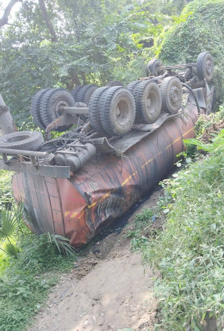 नेशनल हाईवे पर तेल टैंकर पलटा
