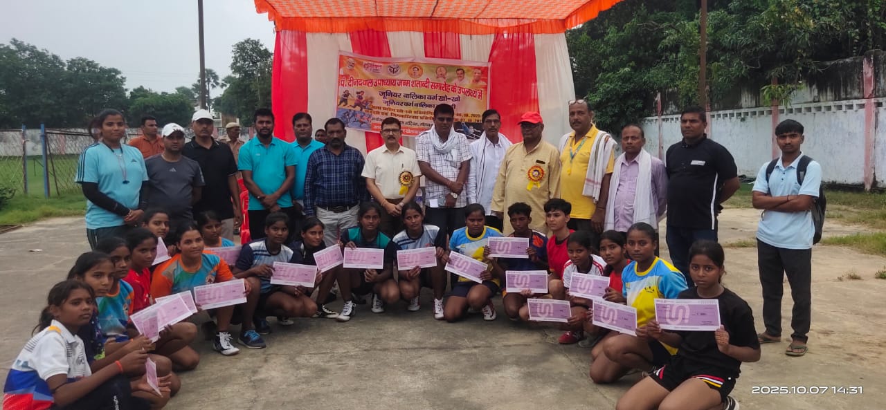 गाजीपुर। पं. दीनदयाल उपाध्याय की जन्मशताब्दी के अवसर पर मिशन शक्ति के अंतर्गत नेहरू स्टेडियम, गोराबाजार, गाजीपुर में जूनियर बालिकाओं की खो-खो प्रतियोगिता का आयोजन किया गया। प्रतियोगिता का समापन एवं पुरस्कार वितरण समारोह जिला युवा कल्याण अधिकारी श्री दिलीप कुमार के कर कमलों द्वारा संपन्न हुआ।