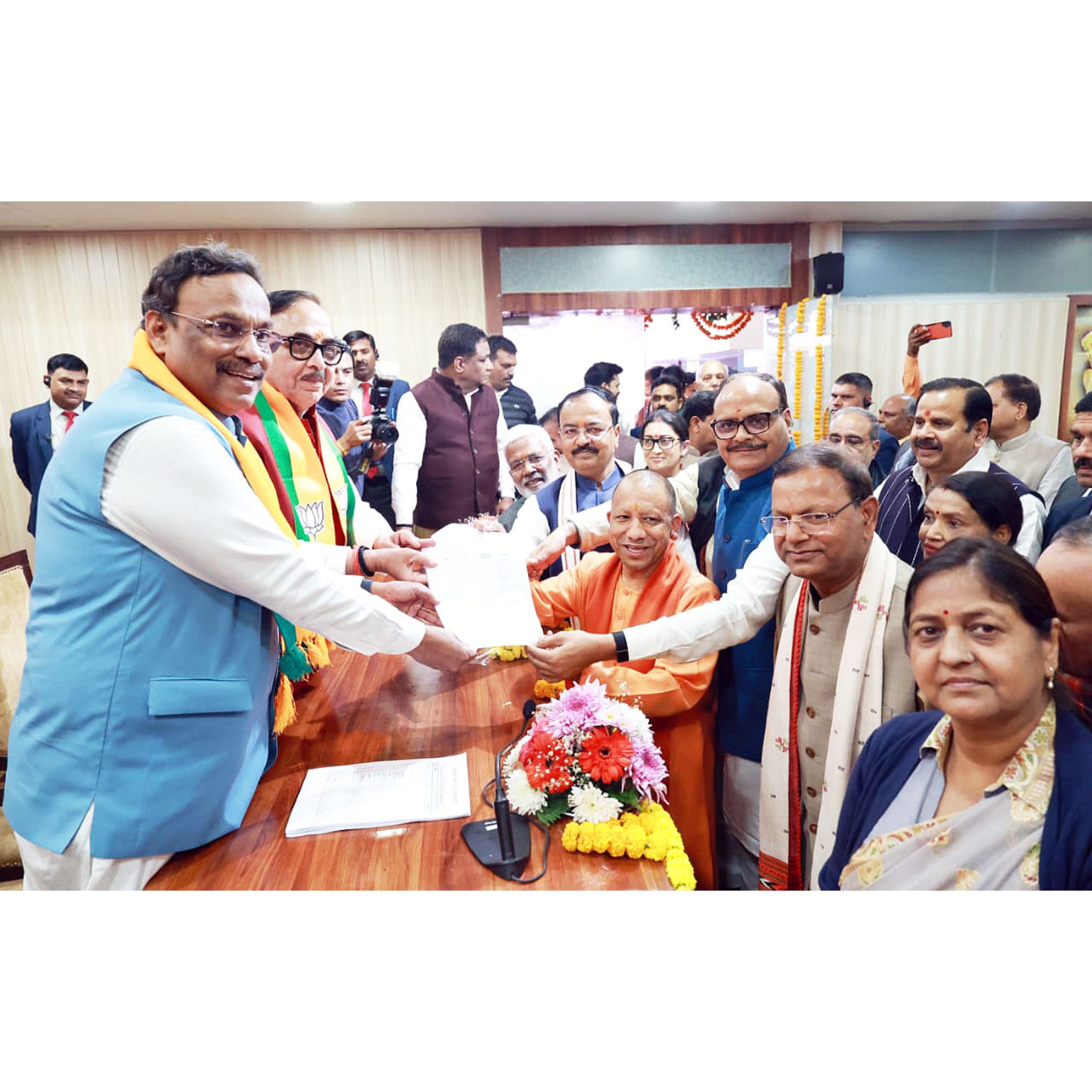 नामांकन के दौरान मुख्यमंत्री योगी आदित्यनाथ, दोनों उपमुख्यमंत्री केशव प्रसाद मौर्य और बृजेश पाठक, भाजपा के राष्ट्रीय महासचिव विनोद तावड़े, वरिष्ठ नेता महेंद्र नाथ पांडे तथा पूर्व केंद्रीय मंत्री स्मृति ईरानी मौजूद रहीं। पार्टी सूत्रों के अनुसार, रविवार को उनके नाम की औपचारिक घोषणा की जा सकती है।