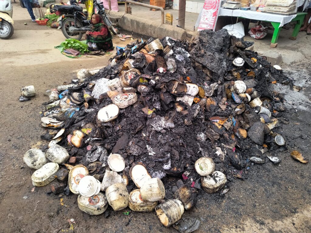 पत्तल-दोना के गोदाम में भीषण आग, लाखों का नुकसान