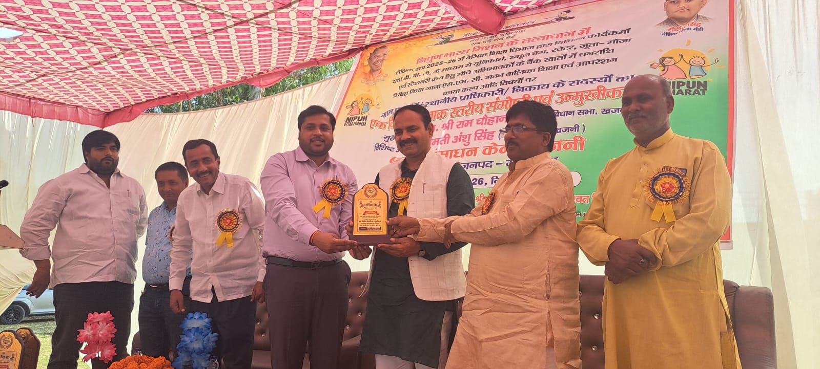कार्यक्रम के दौरान राष्ट्रीय आविष्कार अभियान में चयनित पांच विद्यार्थियों—धनंजय, आलिया खातून, शिवम गुप्ता, अच्छेलाल और प्रतिभा—को सम्मानित किया गया। साथ ही राष्ट्रीय प्रतिभा खोज प्रतियोगिता (NMMS) में चयनित 16 विद्यार्थियों को भी सम्मानित कर उनका उत्साहवर्धन किया गया। प्रत्येक न्याय पंचायत से दो-दो ग्राम प्रधानों को भी सम्मानित किया गया।