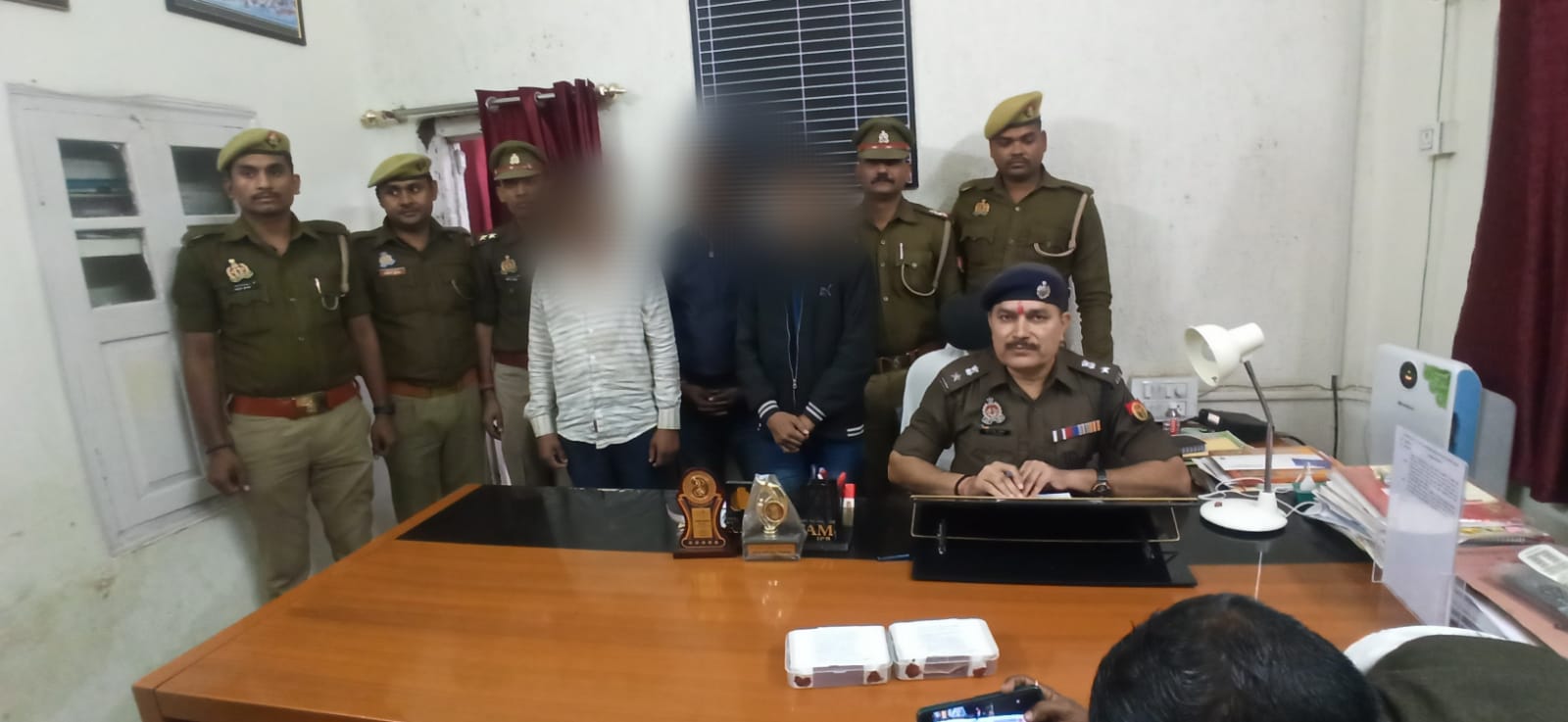 वाराणसी: अभियुक्तों की गिरफ़्तारी हेतु चलाये जा रहे अभियान के क्रम में पुलिस उपायुक्त काशी जोन के निर्देशन में अपर पुलिस उपायुक्त काशी ज़ोन के पर्यवेक्षण में एवं सहायक पुलिस आयुक्त दशाश्वमेध के नेतृत्व में थाना दशाश्वमेध पुलिस टीम द्वारा मु0अ0सं0 73/2023 धारा 379/411 भादवि थाना दशाश्वमेध वाराणसी से सम्बन्धित अभियुक्तगण देवनाथ कुमार पुत्र संतोष राउत निवासी अहरार, पिपरा, पोस्ट विसनडीह, थाना गवनहा, जनपद पश्चिमा चंपारण बिहार उम्र करीब 24 वर्ष  दिलीप कुमार पुत्र विरेन्द्र प्रसाद निवासी अहरार, पिपरा, पोस्ट विसनडीह, थाना गवनहा, जनपद पश्चिमा चंपारण बिहार उम्र करीब 31 वर्ष 3.अंसार अहमद पुत्र मजारुल हक निवासी जे- 23/51 कमालपुरा, थाना जैतपुरा जनपद वाराणसी उम्र 30 वर्ष को आज राजेन्द्र प्रसाद घाट के पास से गिरफ्तार किया गया। उक्त गिरफ्तारी के सम्बन्ध में थाना दशाश्वमेध पुलिस द्वारा आवश्यक विधिक कार्यवाही की जा रही है।