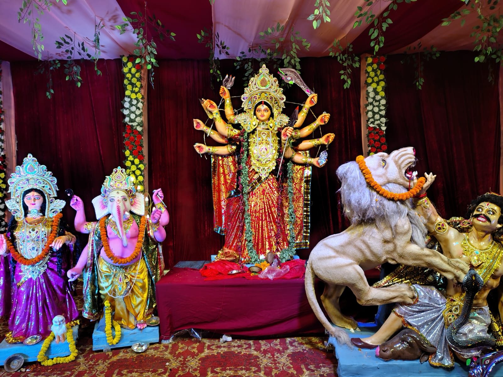 पूजा पंडालों में देर रात तक माँ महिषासुरमर्दिनी के दर्शन को लगी लंबी लाइनें