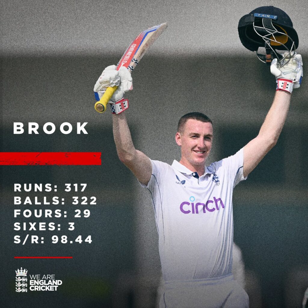 मुल्तान में टेस्ट मैच में इंग्लैंड की टीम ने रनों का पहाड़ खड़ा दिया। हैरी ब्रूक ने टीम के लिए 317 रनों की पारी खेली जबकि जो रूट ने 263 रन बनाए। इस तरह इंग्लैंड की टीम ने पाकिस्तान के खिलाफ अपनी पहली पारी में 7 विकेट पर 823 रन बनाकर पारी को घोषित किया। इससे पहले पाकिस्तान की टीम ने टीम ने आगा सलमान की शतकीय पारी से 556 रन का स्कोर खड़ा किया था।