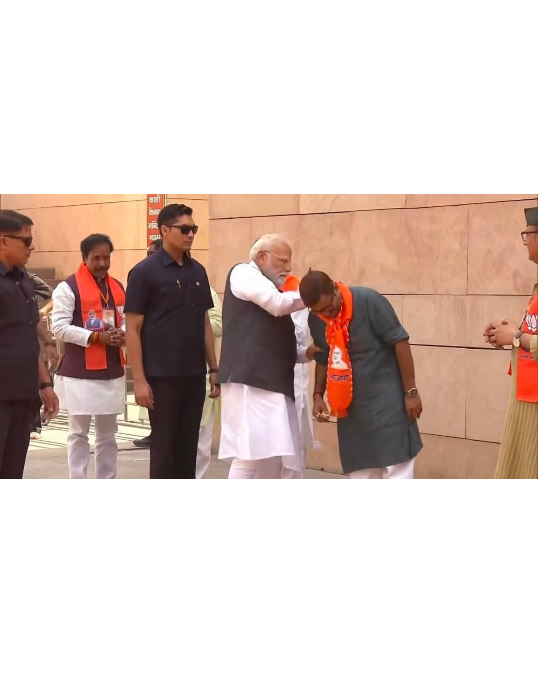 मुलाकात के दौरान प्रधानमंत्री को मंदिर की प्रतिकृति, डमरू, गमछा और त्रिशूल भेंट किया गया। इसी दौरान एक तस्वीर सोशल मीडिया पर चर्चा का विषय बन गई, जिसमें प्रधानमंत्री मोदी विधायक नीलकंठ तिवारी की पीठ थपथपाते नजर आए। इस आत्मीय क्षण में तिवारी उनके सामने झुकते दिखाई दिए, जिसे लोगों ने भावनात्मक जुड़ाव के रूप में देखा।