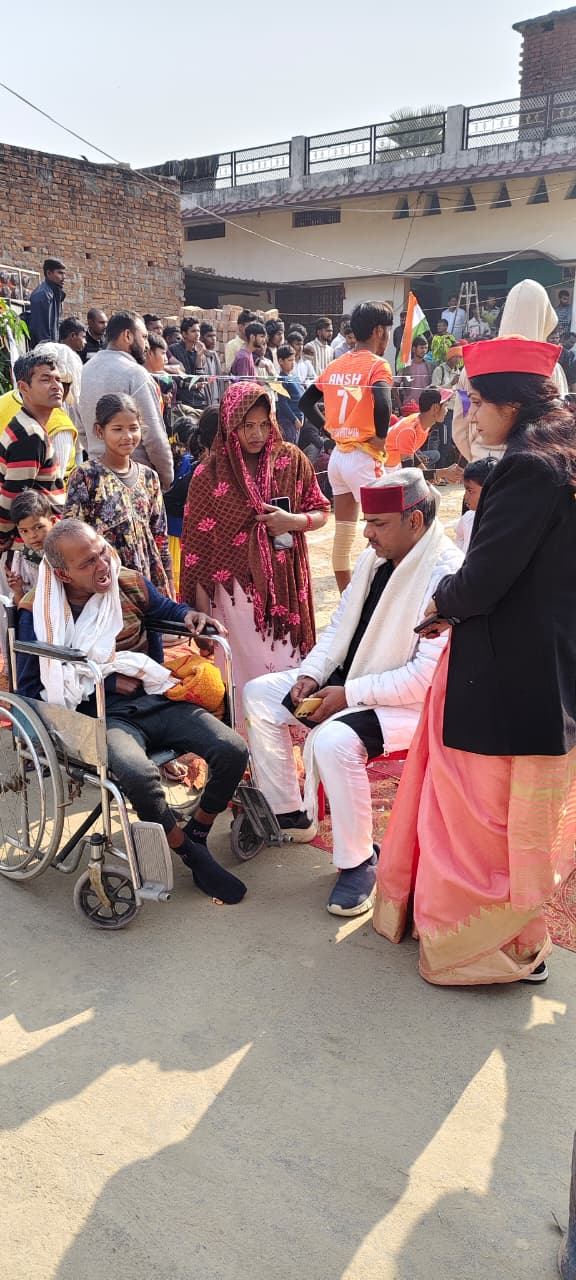 यह दृश्य पुनीता सिंह खुशबू के मन को भीतर तक झकझोर दिया। उन्होंने बच्ची को बुलाकर बातचीत कर परिवार के बारे में जानकारी लेने पर पता चला कि व्हीलचेयर पर बैठे व्यक्ति गांव के शिक्षित शिक्षक चंद्रिका प्रसाद हैं। जो विगत दो वर्षों से लकवाग्रस्त हो गये हैं। बीमारी ने उनके शरीर को जकड़ा ही नहीं, बल्कि पूरे परिवार की आर्थिक स्थिति कोभी चरमरा दिया है।घर में एक पुत्र और दो पुत्रियां हैं। जो पढ़ाई में होनहार हैं, लेकिन आर्थिक अभाव के कारण उनका भविष्य अधर में लटकता नजर आ रहा है। बीमार शिक्षक चंद्रिका की पत्नी दीपा देवी ने जब अपनी पीड़ा दवा खर्च,घर का खर्च व बच्चों के पढ़ाई बोझ को साझा करते करते रहो पड़ी।