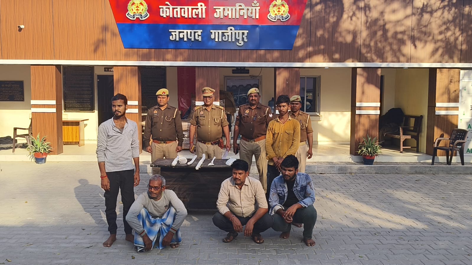 पुलिस ने अपराध एवं अपराधियों के विरुद्ध चलाए जा रहे अभियान के क्रम में शुक्रवार दिनांक 27 फरवरी 2026 को बरेसर नहर पुलिया पर चेकिंग के दौरान मुखबिर खास की सूचना पर चार वांछित अभियुक्तों को गिरफ्तार किया। गिरफ्तार किए गए आरोपियों में भगवान यादव (46) पुत्र स्व. रामनारायण यादव, मंगल यादव (58) पुत्र स्व. रामनारायण, बृजेश यादव (22) पुत्र भगवान यादव तथा शिवप्रकाश यादव (24) पुत्र मंगल यादव शामिल हैं। इसके साथ ही इस मुकदमे से संबंधित एक 17 वर्षीय बाल अपचारी (नाबालिग) को भी पुलिस अभिरक्षा में लिया गया है। सभी आरोपी ग्राम जमानिया पटखौलिया, थाना जमानिया, जनपद गाजीपुर के निवासी हैं।