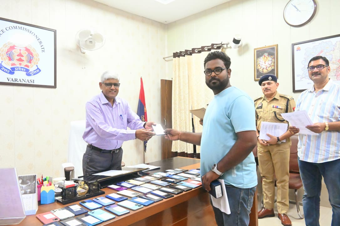 वाराणसी: पुलिस आयुक्त कमिश्नरेट वाराणसी मुथा अशोक जैन के निर्देशन व अपर पुलिस आयुक्त (मुख्यालय एवं अपराध) डॉ के एजिलरसन के नेतृत्व में कमिश्नरेट वाराणसी के सर्विलांस टीम द्वारा खोया-पाया 101 मोबाइल (अनुमानित कीमत 20 लाख रुपये) बरामद कर उनके स्वामियों को सौंपा गया।
