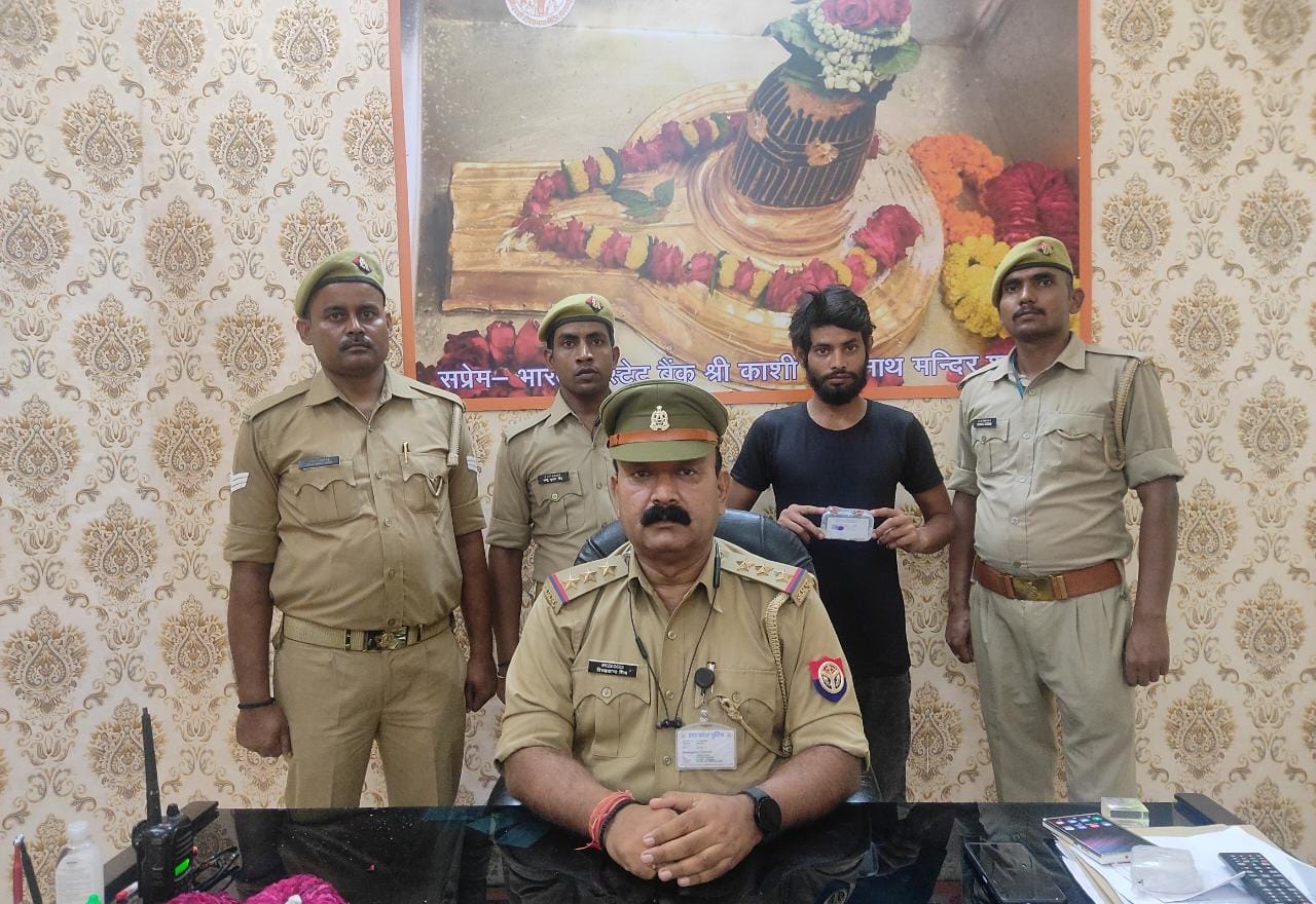 वाराणसी| अपराधियों के विरुद्ध अभियान के तहत पुलिस उपायुक्त ज़ोन काशी राम सेवक गौतम के आदेश के क्रम में अपर पुलिस उपायुक्त राजेश पाण्डेय ज़ोन काशी व सहायक पुलिस आयुक्त दशाश्वमेध अवधेश कुमार पाण्डेय के कुशल नेतृत्व में प्रभारी निरीक्षक चौक शिवाकांत मिश्र की टीम द्वारा सोमवार को एक चैन स्नैचर को चैन छीनने के 20 मिनट के अंदर ही गिरफ्तार कर लूटी गई को चैन बरामद कर लिया गया , अभियुक्त के विरुद्ध थाना स्थानीय पर मु0अ0सं0 97/2022 धारा 392,411,506 IPC पंजीकृत कर विधिक कार्यवाही की जा रही है । घटना का संक्षिप्त विवरण वादिनी पूजा केशरी पत्नी हेमंत केसरी निवासिनी A 3/213 भगतपुरी राजघाट थाना आदमपुर कमिश्नरेट वाराणसी अपने व्यक्तिगत काम से दिनांक 29/08/2022 को गोदौलिया गई हुई थी वापस लौटते समय सायं लगभग 17:00 बजे बेनिया से कबीरचौरा की तरफ जा रही थी की एक व्यक्ति निर्जन स्थान देख कर धक्का देदिया और गले में पहनी हुई सोने की चैन छीन कर भागने लगा कि पीड़िता द्वारा शोर मचाने पर थोड़ी दूर पर मौजूद थाना चौक की फैंटम 16 के कर्मचारीगण द्वारा शोर सुन कर जनता के व्यक्तियों के साथ भागे और दौड़ाकर भागते हुए अभियुक्त को गली में पकड़ लिए तलाशी के दौरान लूटी गई चैन मय लॉकेट के बरामद हुई ।