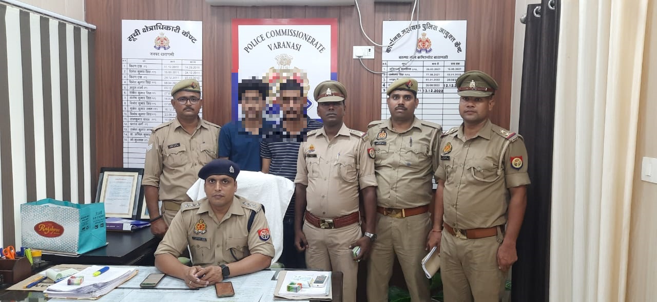 वाराणसी। अपराधों की रोकथाम एवं वांछित फरार अभियुक्तों की गिरफ्तारी हेतु चलाये जा रहे अभियान के क्रम में पुलिस उपायुक्त वरुणा जोन के निर्देशन मे अपर पुलिस उपायुक्त वरुणा जोन के पर्यवेक्षण मे एवं सहायक पुलिस आयुक्त कैन्ट के नेतृत्व में थाना कैण्ट पुलिस टीम द्वारा मुखबिर की सहायता से मु0अ0सं0-348/23 धारा 336 भादवि 7 सीएलए एक्ट से सम्बन्धित वांछित अभियुक्तगण आकाश त्रिपाठी पुत्र संतोष कुमार त्रिपाठी निवासी ग्राम मवैया थाना सारनाथ वाराणसी अंकित शुक्ला पुत्र अजय शुक्ला निवासी आशापुर थाना सारनाथ वाराणसी स्थायी पता-ग्राम वालीपुर थाना देवगाव जनपद आजमगढ़ को सेन्ट्रल जेल से इमिलायाघाट वाले रास्ते से गिरफ्तार किया गया। उक्त गिरफ्तारी के संबंध में थाना कैण्ट पुलिस द्वारा आवश्यक विधिक कार्यवाही की जा रही है।