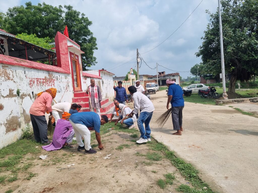 पूर्व जिला उपाध्यक्ष रघुवंश सिंह पप्पू के नेतृत्व में मखदुमपुर शिव मंदिर पर चला सफाई अभियान