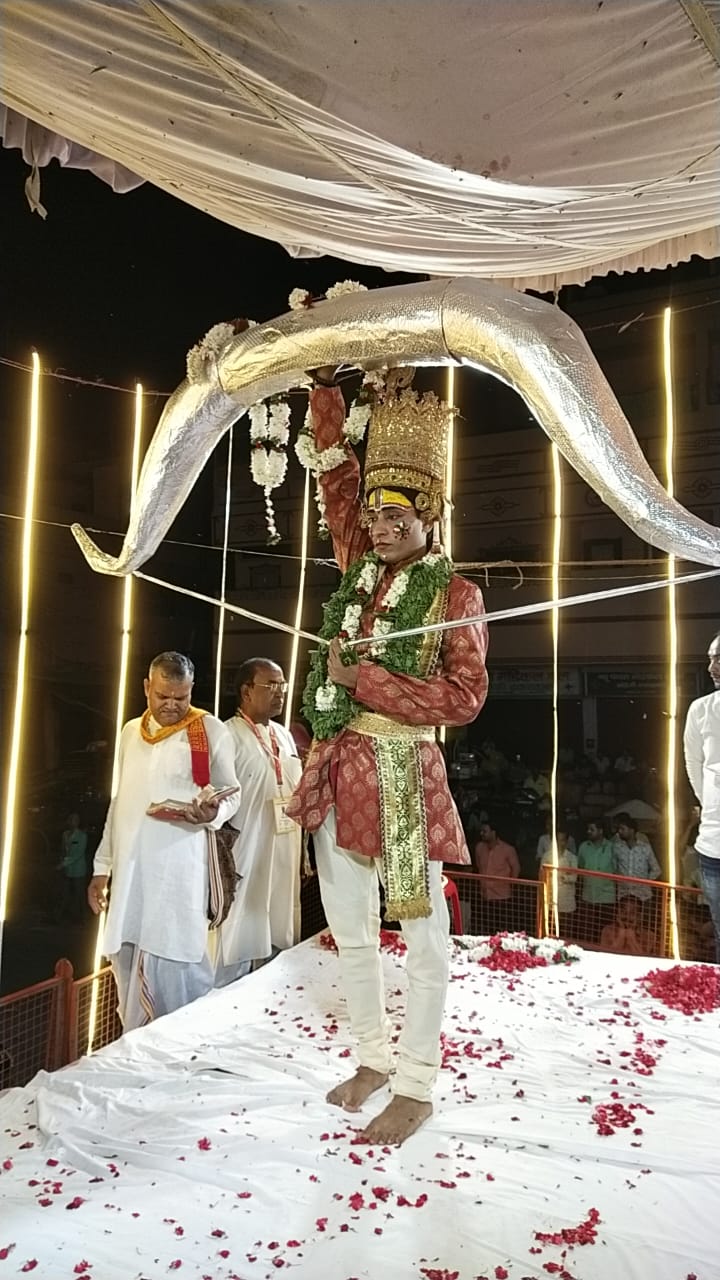वाराणसी: काशीपुरा रामलीला के छठवें दिन धनुषयज्ञ के लीला का मंचन बहुत ही भव्यता के साथ हुआ देश देशांतर के दस हजार राजा सीता स्वयंवर में सीता को वरण करने के लिए आये पर शिव धनुष तोड़ना तो दूर उसे हिला तक नही पाए। जिसे प्रभु श्री राम जी ने गुरू के आशीष लेकर बहुत ही सहज और आसानी के साथ चाप ही नही वरन उसे अपने हाथो से तोड़ कर जनक विदेह राज के वचनों की लाज रख सीता स्वयंवर में सीता जी के साथ जयमाल पहन कर बन गये सीता राम। धनुष टूटने पर परशुराम द्वारा कुपित होना लक्ष्मण द्वारा परशुराम के साथ संवाद बहुत उत्तेजित रहा अन्त में श्री राम प्रभु द्वारा परशुराम जी को अपना विराट परिचय देकर परशुराम का क्रोध शान्त किया अन्त में आरती के साथ आज की रामलीला सम्पन्न हुआ।