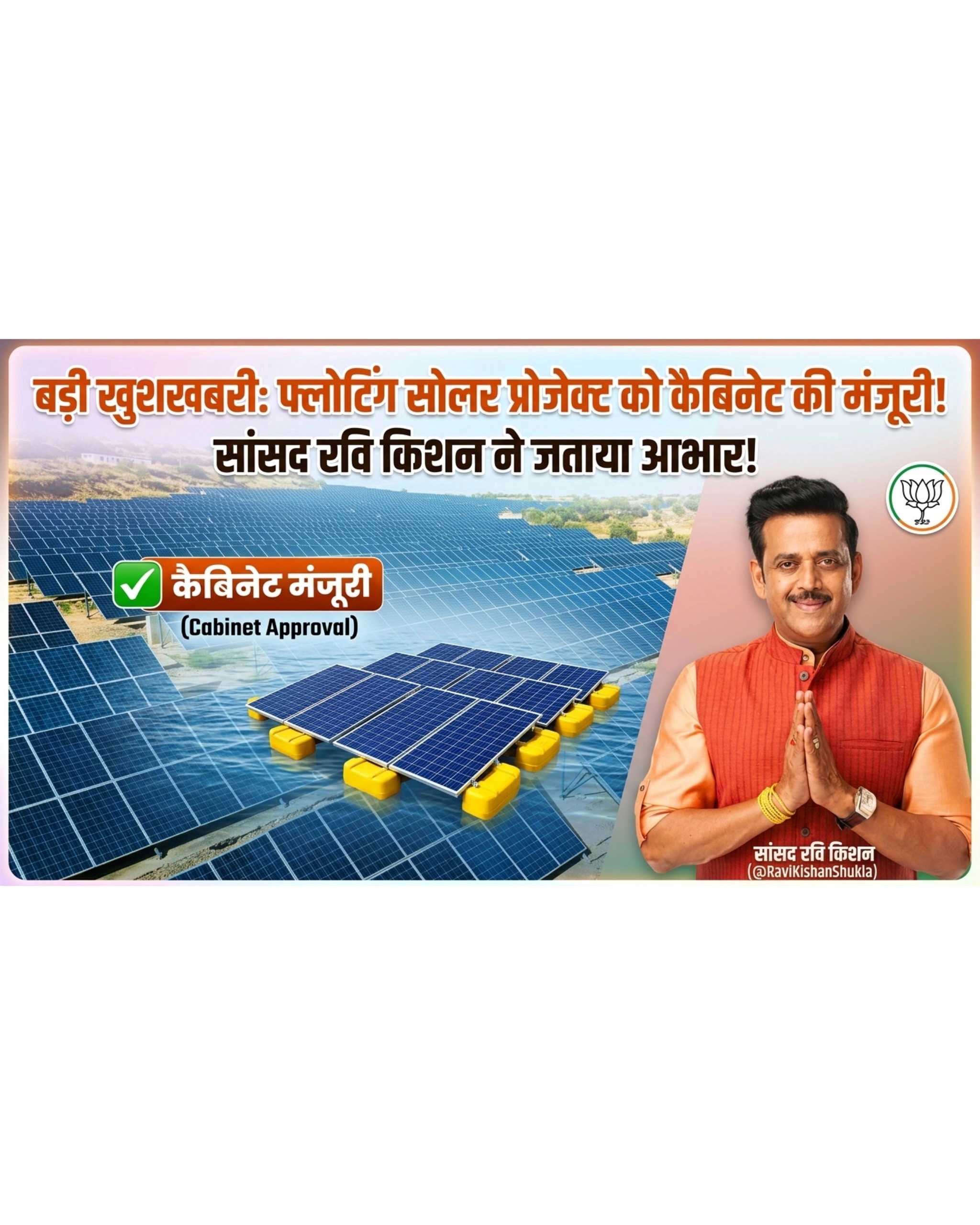 फ्लोटिंग सोलर प्रोजेक्ट को कैबिनेट की मंजूरी, सांसद रवि किशन ने जताया आभार