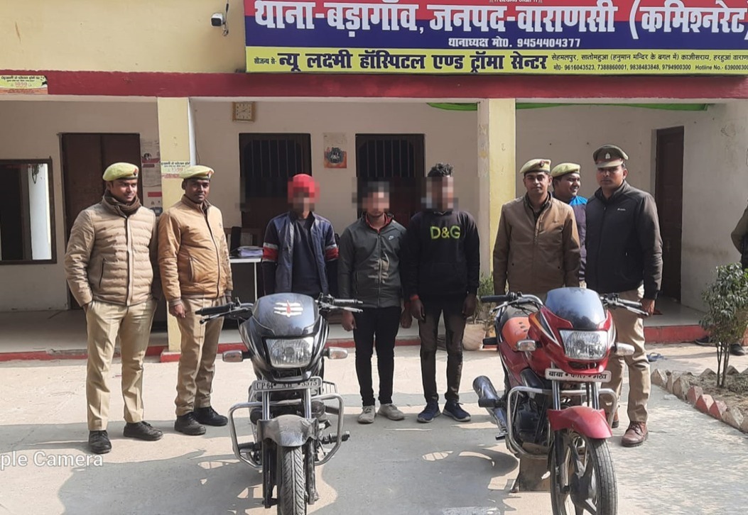 बड़ागाँव पुलिस ने फर्जी नम्बर प्लेट तैयार कर चोरी की मोटरसाईकिल बेचने वाले तीन अभियुक्त को दो चोरी की मोटरसाइकिल के साथ किया गिरफ्तार