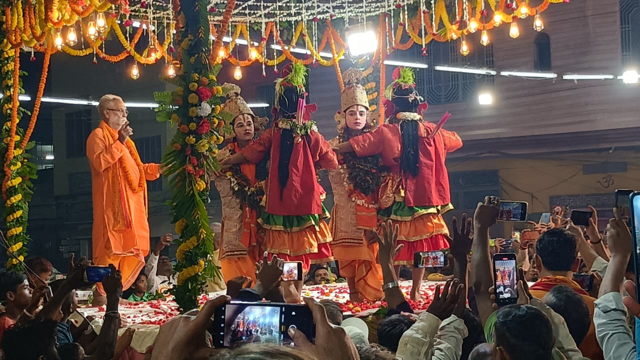 वाराणसी। श्री आदि रामलीला लाटभैरव वरूणा संगम काशी की सुप्रसिद्ध भरत मिलाप की लीला बुधवार को अर्द्धरात्रि में राजघाट (भैसासुर त्रिमुहानी) पर परम्परागत स्थान पर परम्परागत ढंग से सोल्लास सुसम्पन्न हो गई। हजारों दर्शकों ने ‘रामचन्द्र की जै, लखनलाल की जै, चारों भाईयों की जै, हर हर महादेव’ के गगनभेदी जयघोषों के बीच चारों भाईयों राम, भरत, लक्ष्मण व शत्रुघ्न को 14 वर्षों के वनवास के कालखण्ड के अन्त के बाद मनोहारी ढंग से विशेष पारम्परिक शैली में जब एक दूसरे के गले से गले मिलते देखा तो भावविभोर हो गये। चारों तरफ से यहाँ तक की मकानों की दूसरी और तीसरी मंजिलों से भी पुष्प वर्षा होने लगी। बिजली से सजे आकर्षक मंच पर रंगीन रोशनी में मिलाप की अद्भुत छटा देखकर नर-नारी, बाल, वृद्ध, युवा सभी मंत्रमुग्ध हो गए। इस अवसर पर समिति के प्रधानमंत्री कन्हैया लाल यादव एडवोकेट, व्यास पंडित दयाशंकर त्रिपाठी, केवल कुशवाहा, विकास यादव, श्याम सुंदर सिंह, उत्कर्ष कुशवाहा आदि भारी संख्या में रामलीला समिति के पदाधिकारी, कार्यकर्ता संभ्रात नागरिक भरत मिलाप की उस एक झलक पाने के लिए आतुर थे। जिन्होंने इस अवसर पर चारों भाईयों को पुष्प भेंट किए और माल्यार्पण किए।