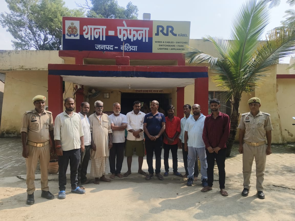 बलिया के फेफना थाना क्षेत्र में पुलिस ने शांति व्यवस्था बनाए रखने के अभियान के तहत बड़ी कार्रवाई करते हुए 10 लोगों को गिरफ्तार किया है। पुलिस अधीक्षक ओमवीर सिंह के निर्देश पर चलाए जा रहे इस अभियान के तहत विभिन्न गांवों से आरोपियों को हिरासत में लिया गया।