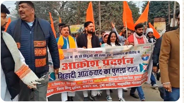 बांग्लादेश में हिंदुओं पर हिंसा के विरोध में गोरखपुर में सड़कों पर उतरे हिंदू संगठन