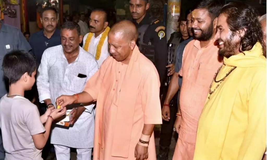 बाबा काल भैरव का दर्शन कर सीएम योगी ने बच्चों में वितरित किया प्रसाद और चॉकलेट