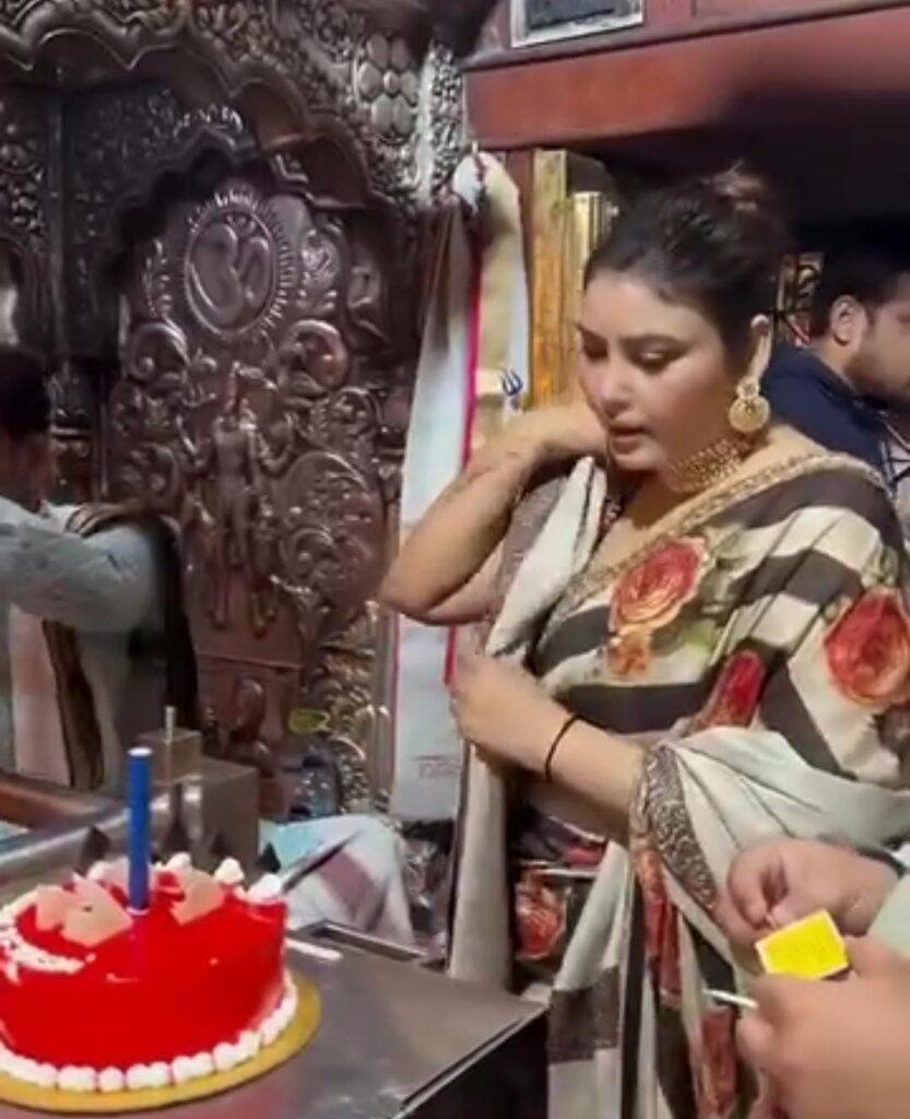 वीडियो में एक महिला को बाबा कालभैरव के मंदिर में पूजा और पुजारी का आशीर्वाद लेने के बाद गर्भगृह में केक काटते हुए देखा गया।