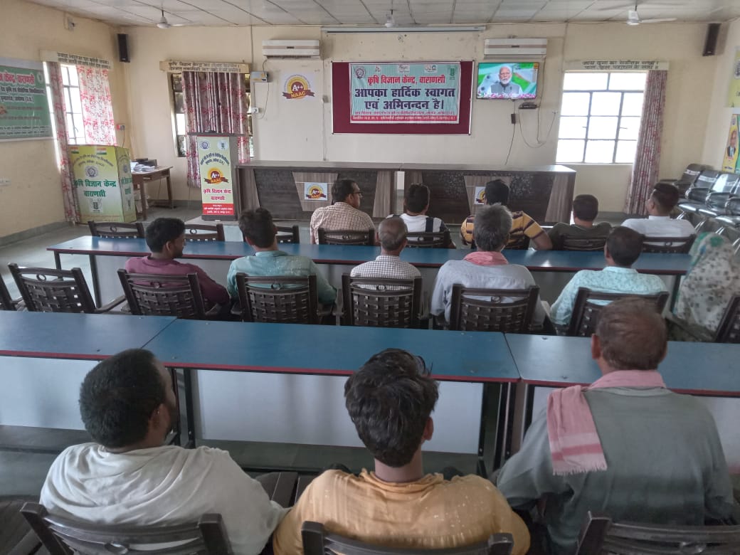 वाराणसी (मिर्जामुराद)। भारतीय कृषि अनुसंधान परिषद नई दिल्ली में प्रधानमंत्री नरेन्द्र मोदी द्वारा विभिन्न जलवायु क्षेत्र के लिए उपयुक्त 65 फसलों की 109 प्रजातियां को राष्ट्र के किसानों को समर्पित किया गया। इस कार्यक्रम के तहत कृषि विज्ञान केंद्र कल्लीपुर द्वारा एक जागरूकता गोष्ठी एवं कार्यक्रम के सजीव प्रसारण का आयोजन किया गया जिसमें जनपद के दर्जनों प्रगतिशील कृषकों ने प्रतिभाग किया।