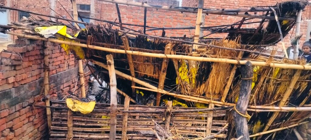 बारा में दो झोपड़ियां जलकर राख, गाय झुलसी