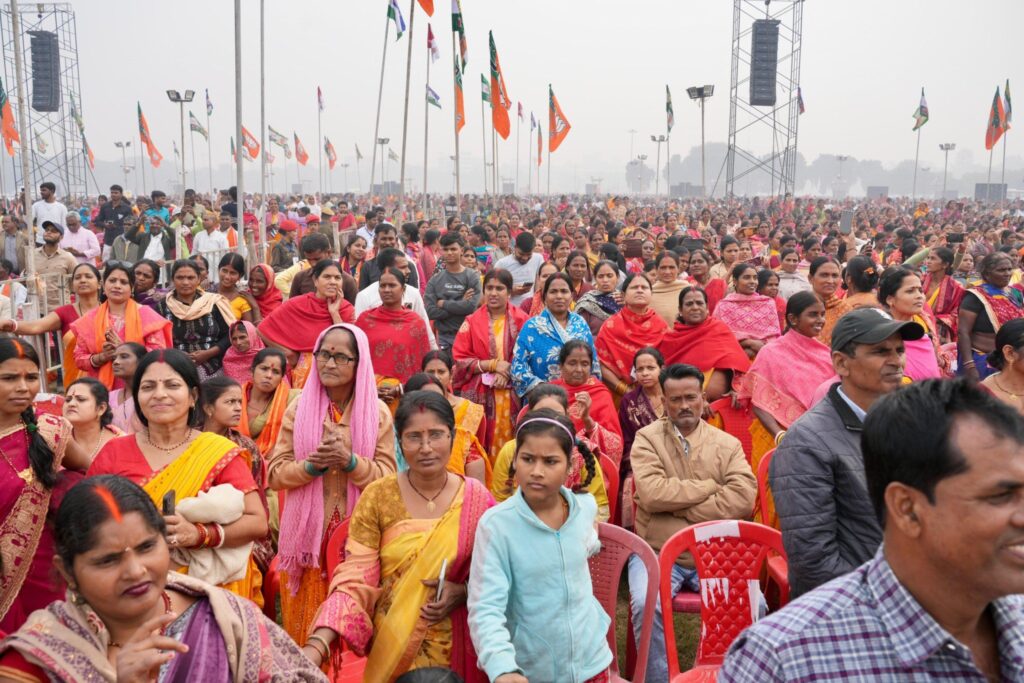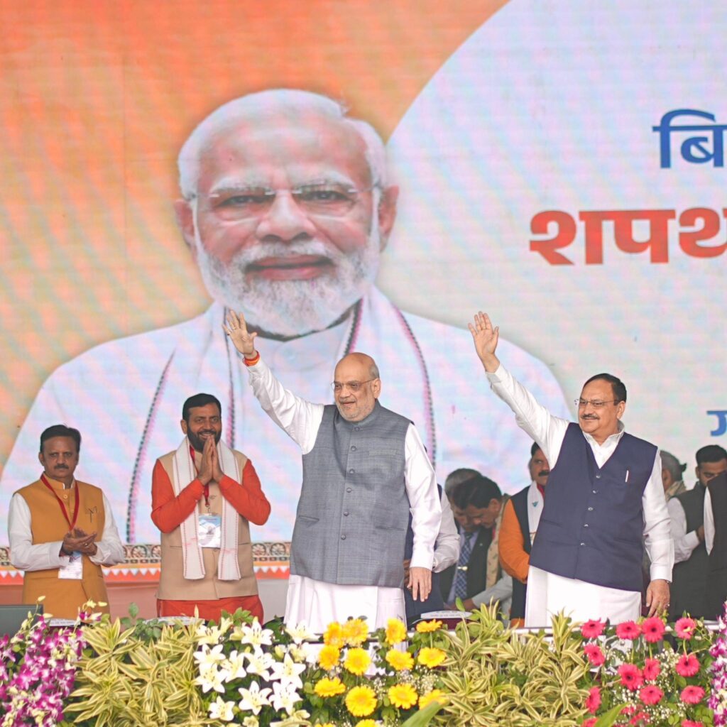 गांधी मैदान में हुए इस ऐतिहासिक कार्यक्रम में प्रधानमंत्री नरेंद्र मोदी, केंद्रीय गृह मंत्री अमित शाह, भाजपा अध्यक्ष जेपी नड्डा, तथा एनडीए शासित राज्यों के कई मुख्यमंत्री मौजूद रहे। यूपी के मुख्यमंत्री योगी आदित्यनाथ, मध्य प्रदेश के मोहन यादव, राजस्थान के भजनलाल शर्मा और गुजरात के भूपेंद्र पटेल भी मंच पर उपस्थित थे। मौके पर हजारों की संख्या में आम जनता और कार्यकर्ताओं ने “बिहार में फिर एक बार–नीतीश कुमार” के नारों के साथ उत्साह व्यक्त किया।