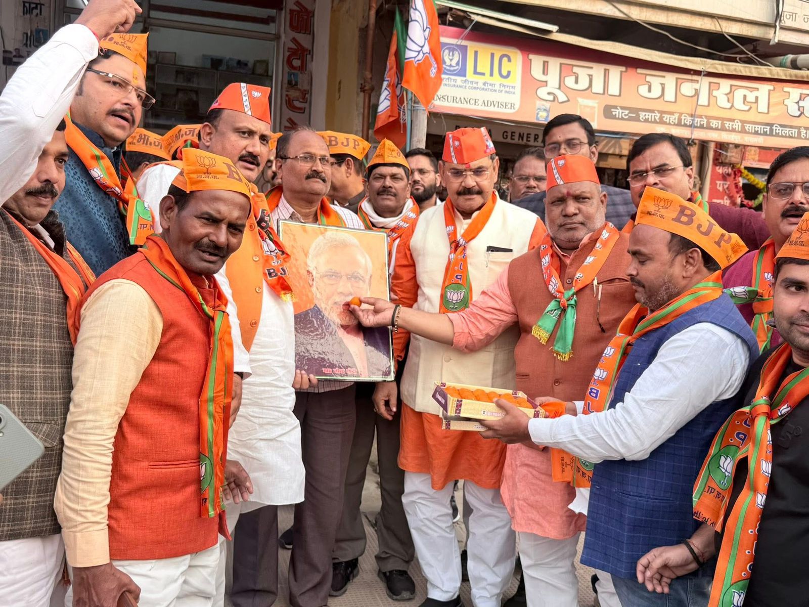 वाराणसी। बिहार विधानसभा चुनाव में भाजपा को प्रचंड बहुमत मिलने पर एमएलएसी कैम्प कार्यालय कंचनपुर में विधान परिषद सदस्य एवं भाजपा जिलाध्यक्ष हंसराज विश्वकर्मा के नेतृत्व में भाजपा के सैकड़ों कार्यकर्ताओं व पदाधिकारियों ने विजय जुलूस निकालकर उत्साहपूर्वक जीत का जश्न मनाया। कार्यकर्ताओं ने एक-दूसरे को मिठाई खिलाकर खुशी साझा की।