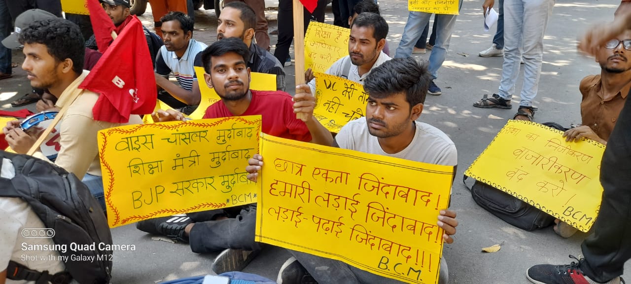 बीएचयू फीस वृद्धि के खिलाफ़ भगतसिंह छात्र मोर्चा का केंद्रीय कार्यालय पर विरोध प्रदर्शन