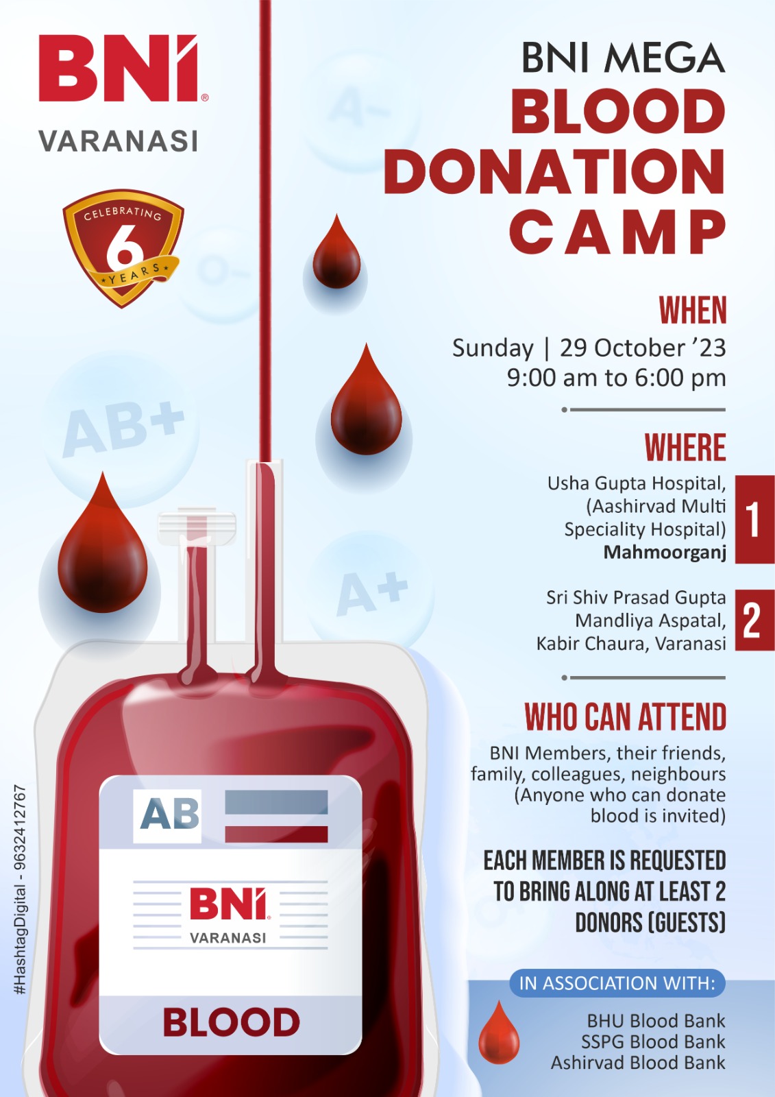 वाराणासी। BNI वाराणसी अपने छठे स्थापना दिवस के उपलक्ष्य में दिनांक 29 अक्टूबर रविवार को अनुकरणीय व अनमोल कार्य रक्तदान महाकुंभ शिविर का आयोजन सुबह 9 बजे से शाम 6 बजे तक आशीर्वाद अस्पताल, बीएचयू ब्लड बैंक की वैन एवं श्री शिव प्रसाद गुप्त मंडलीय अस्पताल के ब्लड बैंक के सहयोग से करने जा रहा है। वाराणसी जिले एवं आसपास के जिलों में डेंगू प्रकोप , वायरल बुखार के कारण सभी अस्पताल में मरीज भरे हुए है और एसडीपी, रक्त की आवश्यकता रोज बहुत ज्यादा हो रही है। इसीलिए BNI वाराणसी ने यह सामाजिक एवं नेक कार्य समाज में जागरूकता पैदा करने और अपने साथियों के रक्त द्वारा रक्तांजलि से नर सेवा नारायण सेवा जैसा अभिनव कार्य करने का संकल्प लिया है। बी एन आई के 12 चैप्टर 600 सदस्यों के साथ व्यापार को केंद्र में रखकर कार्य करती है ने अपने छ्ठवे स्थापना दिवस पर इस सामाजिक उत्तरदायित्व को निर्वहन करने को संकल्पित है । वाराणसी बी एन आई के एक्जीक्यूटिव डायरेक्टर आयुष नरसरिया तथा इनोवेट के कार्यक्रम संयोजक राजेश गुप्ता ने बताया कि इस इस रक्तदान महाकुंभ से निकला रक्त से थैलीसीमिया, हीमोफीलिया तथा एच आई वी से संक्रमित मरीजों को मदद मिलेगी। महाकुंभ को मूर्त रूप देने के लिए 17 सदस्यीय समिति गठित की गई है जिसमे मुख्य रूप से अर्पित सर्राफ, अमन मेहरा, राजेश गुप्ता, संजय बनर्जी, नीरज पारिख, प्रतीक लालवानी, रोहित गुप्ता, मनीष, अंशित गिनोडिया , आकाश बाथम, डॉक्टर सईदा, सीमा आसवानी, रोहित , अमन, मयंक, ओम प्रकाश, अमितांश,विवेक केशरी,रितेश अग्रवाल, आशुतोष गुप्ता आदि को अलग अलग जिम्मेदारी सौंपी गई है।