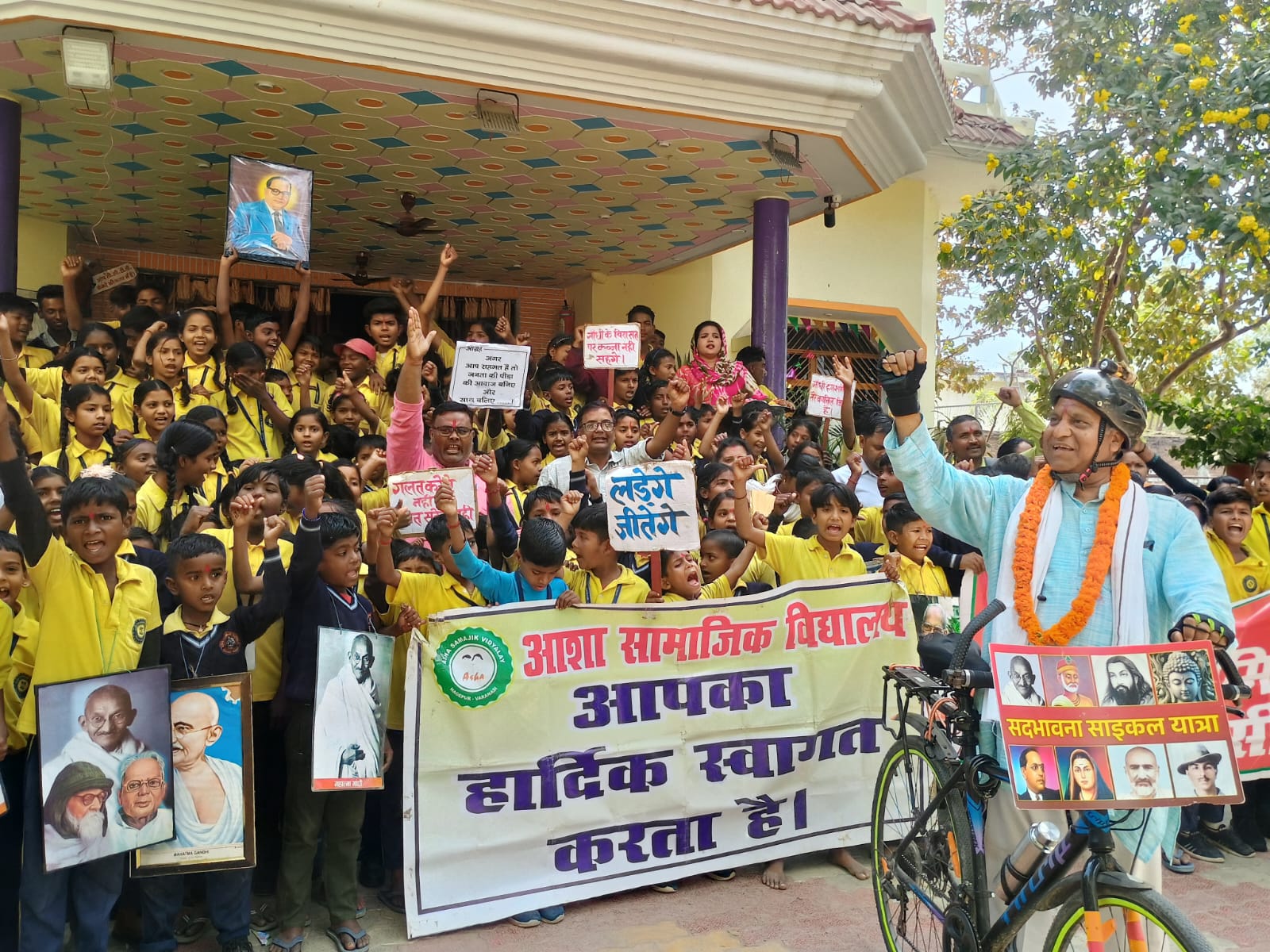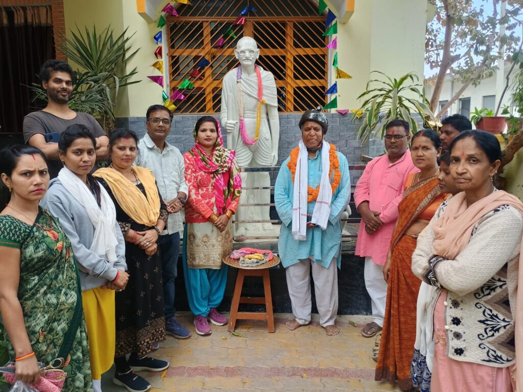 मिर्जामुराद (वाराणसी)।  महात्मा गांधी की समाधि स्थल राजघाट दिल्ली से 30 जनवरी से साइकिल यात्रा पर निकले जाने माने सामाजिक और मानवाधिकार कार्यकर्ता हिमांशु कुमार प्रधानमंत्री आदर्श ग्राम नागेपुर पहुंचे तो लोक समिति कार्यकर्ता और आशा सामाजिक विद्यालय के बच्चों ने माला पहनाकर स्वागत किया।