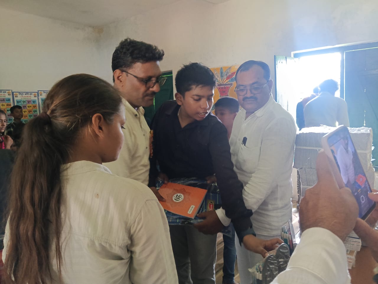 बैग-कॉपी और कलम पाकर बच्चों के खिले चेहरे