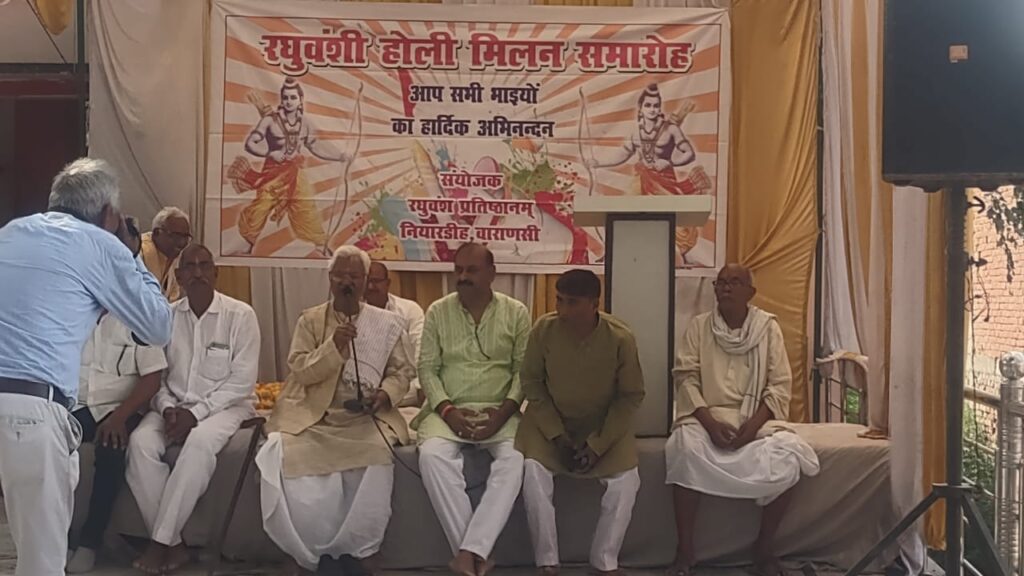 वाराणसी। चोलापुर क्षेत्र के नियारडीह स्थित बाबा पुकार राय के चबूतरा पटेहरा नियारडीह पर हर वर्ष की भांति रघुवंशी समाज का होली मिलन समारोह मनाया गया। जिसमें वाराणसी, जौनपुर, भदोही, चंदौली,गाजीपुर, आजमगढ़ सहित पूर्वांचल के अन्य जिलों से सैकड़ो रघुवंशी परिवार के लोग शामिल हुए और एक स्वर में सभी ने अयोध्या में भगवान राम की प्राण प्रतिष्ठा होने की खुशी मनाते हुए भगवान राम के आदर्शों पर चलने का संकल्प लिया। साथ ही बाबा नयन देव और बाबा पुकार राय की मूर्ति स्थापित करने का संकल्प लिया।