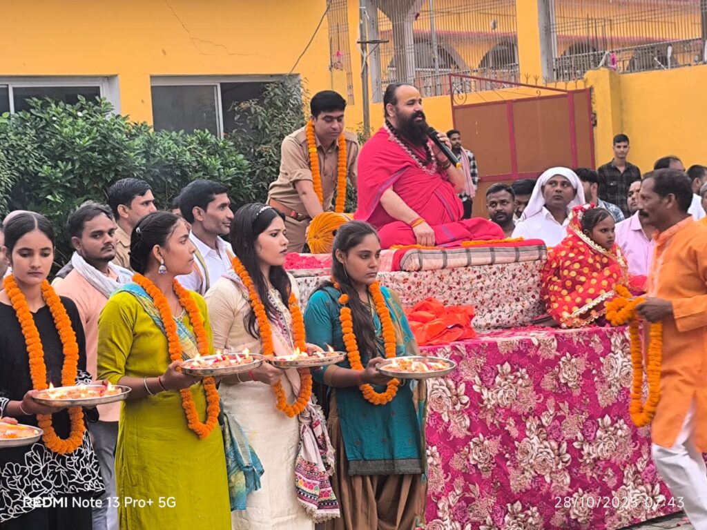 गुरुदेव द्वारा करीब ढाई सौ व्रती महिलाओं को एकत्र कर पारंपरिक विधि से उनका सम्मान और सत्कार किया गया। गांव की ही कन्याओं ने व्रती माताओं के माथे पर कुमकुम, अक्षत और रोली लगाकर उनका स्वागत किया, तत्पश्चात पुष्प वर्षा कर वातावरण को आस्था से भर दिया।