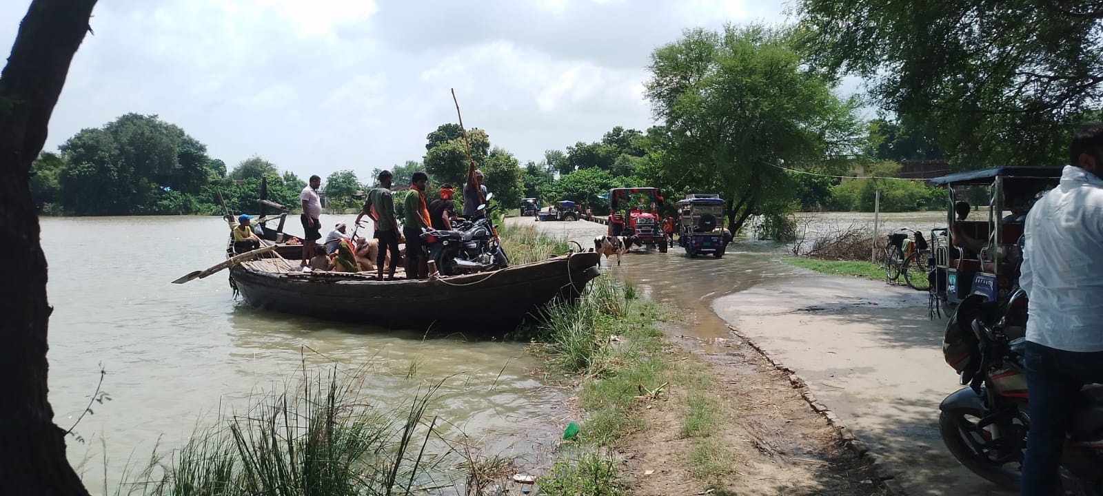 भांवरकोल (गाजीपुर)। स्थानीय विकास खंड क्षेत्र अभी बाढ़ की विभीषिका से उबरता नहीं दिखाई दे रहा है। समाचार लिखे जाने के समय गंगा नदी का बढ़ाव अभी भी जारी है। भांगड़ नाला वीरपुर गंगा नदी से पानी निकालकर धरमपुर, फिरोजपुर, पचासी, कठार, आम घाट, नकटी कोल, रानीपुर, फखनपुरा, कबीरपुर, कुंडेसर गांव तक पानी पहुँचा चुका है। धरमपुर और फिरोजपुर गांव तो नर से नारायण बन चुके हैं। लोगों को गांव से बाहर आवागमन के लिए धरमपुर के पास सरकारी नाव चलवाई जा रही है।