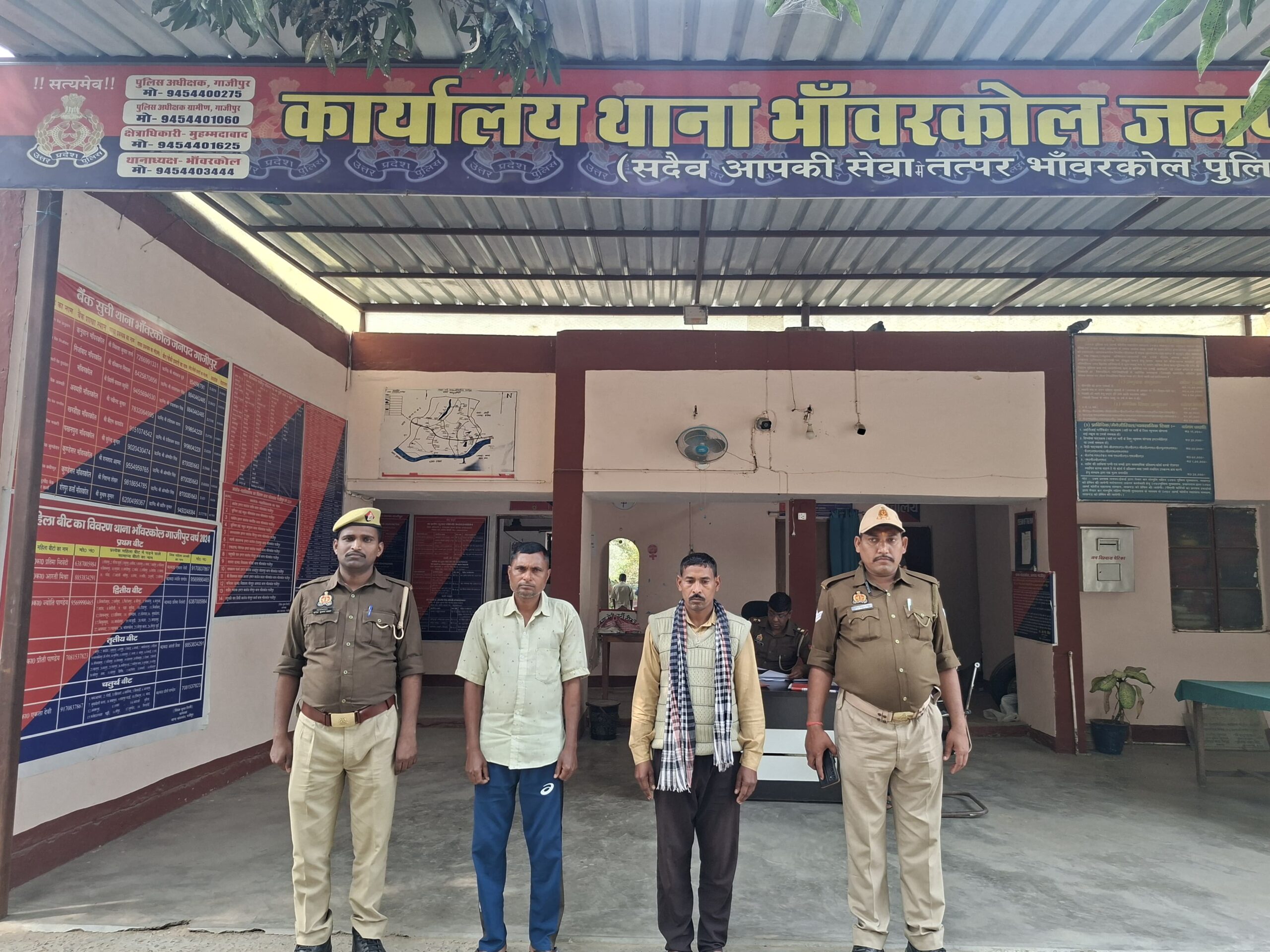 भांवरकोल (गाजीपुर) जयदेश। पुलिस अधीक्षक डॉ. ईरज राजा के निर्देशन में अपराधियों, वांछितों एवं वारंटी अभियुक्तों के विरुद्ध चलाए जा रहे अभियान के तहत अपर पुलिस अधीक्षक ग्रामीण के पर्यवेक्षण एवं क्षेत्राधिकारी मुहम्मदाबाद के मार्गदर्शन में थाना भांवरकोल पुलिस को बड़ी सफलता मिली है। थानाध्यक्ष के नेतृत्व में गठित पुलिस टीम ने मु0अ0सं0 235/25, धारा 3/5ए/5बी/8 गोवध निवारण अधिनियम से संबंधित मामले में वांछित दो इनामिया अभियुक्तों को गिरफ्तार किया है।