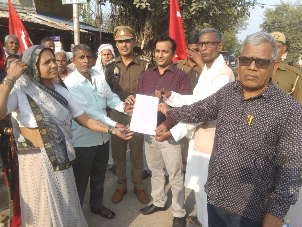 सकलडीहा (चंदौली)। भाकपा माले जिला कमेटी के आव्हान पर बुधवार को उप जिलाधिकारी पंडित दीनदयाल नगर, मुगलसराय अनुपम मिश्रा का पुतला दहन करने की तैयारी की गई थी, लेकिन पुलिस की सक्रियता के कारण कार्यक्रम में बदलाव करना पड़ा। पुलिस ने प्रदर्शनकारियों से कहा कि पुतला दहन न करते हुए ज्ञापन सौंप दिया जाए, उनकी मांग पर विचार किया जाएगा। इसके बाद कार्यकर्ताओं ने मार्च करते हुए जिलाधिकारी महोदय के नाम तहसीलदार मजिस्ट्रेट सकलडीहा को ज्ञापन सौंपा।