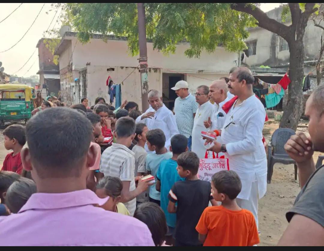 भाजपा पदाधिकारियों ने बच्चों और महिलाओं में किया मिष्ठान वितरित