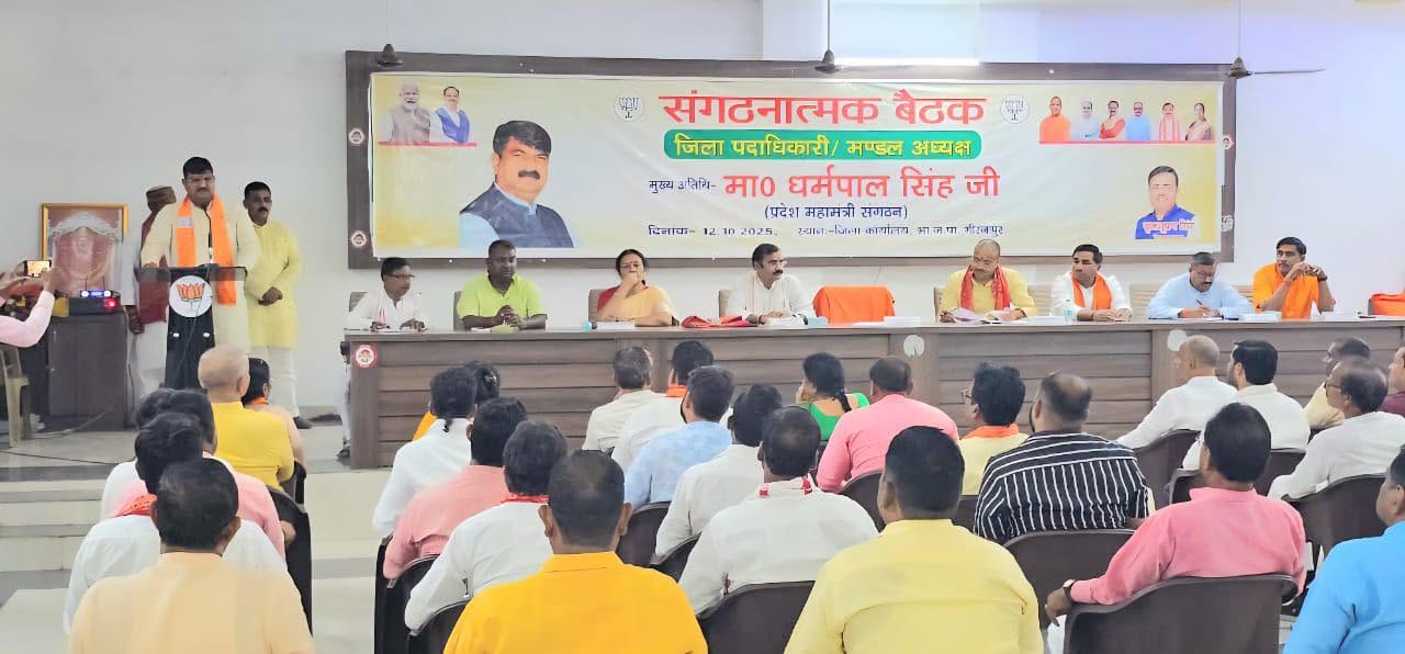 मीरजापुर। भाजपा बरौधा कचार के सभागार में जिलाध्यक्ष बृजभूषण सिंह की अध्यक्षता में संगठनात्मक बैठक आयोजित हुई। मुख्य अतिथि के रूप में प्रदेश महामंत्री (संगठन) धर्मपाल सिंह और क्षेत्र अध्यक्ष काशी दिलीप पटेल उपस्थित रहे।प्रदेश महामंत्री धर्मपाल सिंह ने कहा कि मजबूत बूथ, सक्रिय शक्ति केंद्र और प्रभावी मंडल से ही संगठनात्मक सफलता और निश्चित विजय सुनिश्चित होगी।