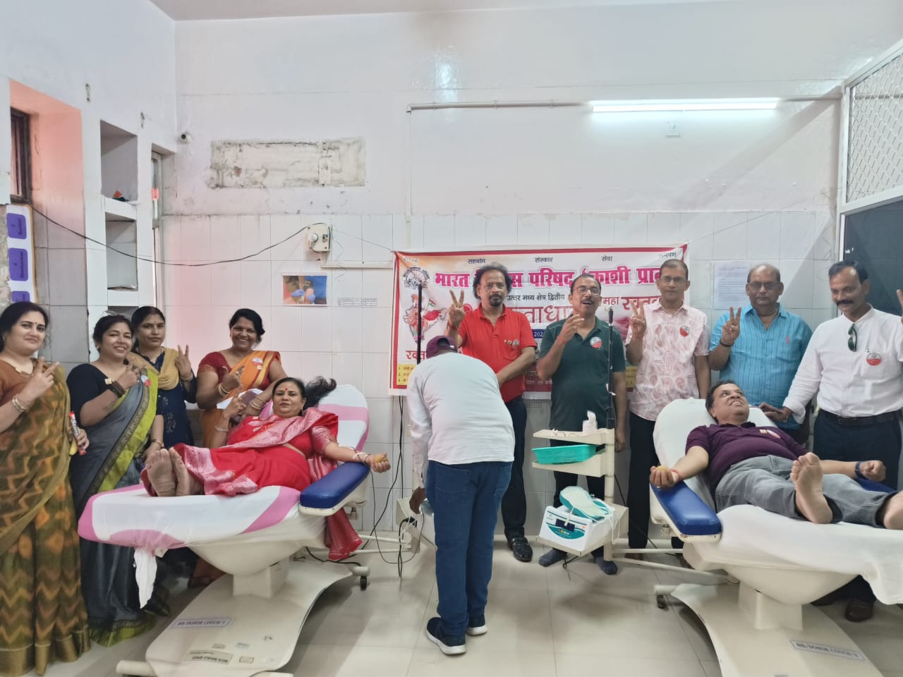 वाराणसी: भारत विकास परिषद काशी प्रांत द्वारा आयोजित सृजन शाखा द्वारा पंडित दीनदयाल उपाध्याय चिकित्सालय में विशाल रक्तदान शिविर लगाया गया शिविर का प्रारंभ प्रांतीय अध्यक्ष प्रवीण पटेल द्वारा एवं हमारे मुख्य अतिथि ACMO डॉक्टर शिवसागर कनौजिया द्वारा मां भारती विवेकानंद जी को पुष्प अर्पण कर एवं वंदे मातरम गायन कर किया गया। शिविर का प्रारंभ अध्यक्ष शशि श्रीवास्तव, जिन्होंने अपने जीवन काल मे 29 वी बार रक्तदान करते हुए कार्य कर्म की गरिमा बढ़ाई। तत् पस्ताक्ष शिविर में नौ छात्र-छात्राओं ने और दो दंपतियों ने रेखा शुक्ला संजय शुक्ला आकांक्षा सिन्हा प्रवीण सिन्हा और पिता पुत्री शाश्वती एव प्रशांत जी ने प्रथम बार रक्तदान कर वहाँ उपस्थित जन मानस को प्रेणना से ओतप्रोत कर दिया। कुल 40 लोगो ने 40 यूनिट रक्तदान किया और मुंह मीठा कर सर्टिफिकेट ,उपहार प्राप्त किया। कार्यक्रम का समापन सभी सदस्यों द्वारा राष्ट्रगान कर के किया गया।