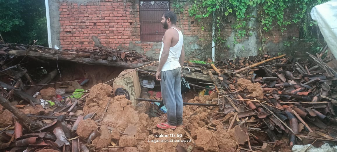 भारी बारिश में खपरैल मकान भरभरा गिरा, महिला और बच्ची गंभीर रूप से घायल