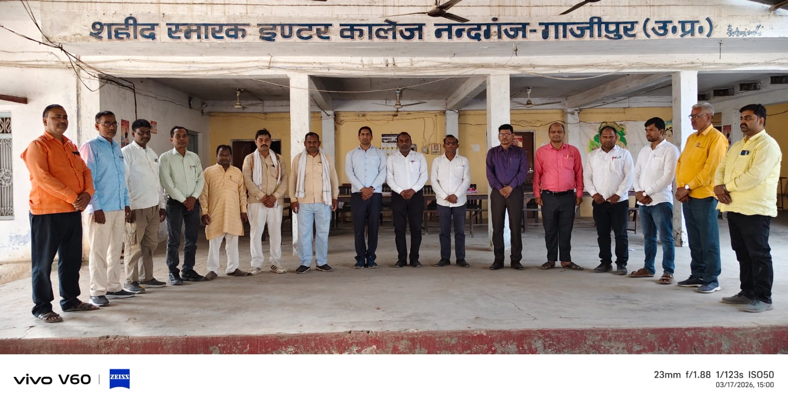 नंदगंज (गाजीपुर) जयदेश। जिले के शहीद स्मारक इंटर कॉलेज, नंदगंज मेंं मंगलवार को एक शोक सभा का आयोजन करके कालेज के भौतिक विज्ञान के वरिष्ठ प्रवक्ता मुकेश कुमार श्रीवास्तव की विगत दिनों दिवंगत माता के निधन पर दो मिनट मौन रहकर शोक व्यक्त करते हुए शोक श्रद्धांजलि अर्पित की गयी। इस शोकसभा में विद्यालय के प्रधानाचार्य सहित सभी शिक्षक शिक्षिकाएं एवं कर्मचारीगण उपस्थित रहें।